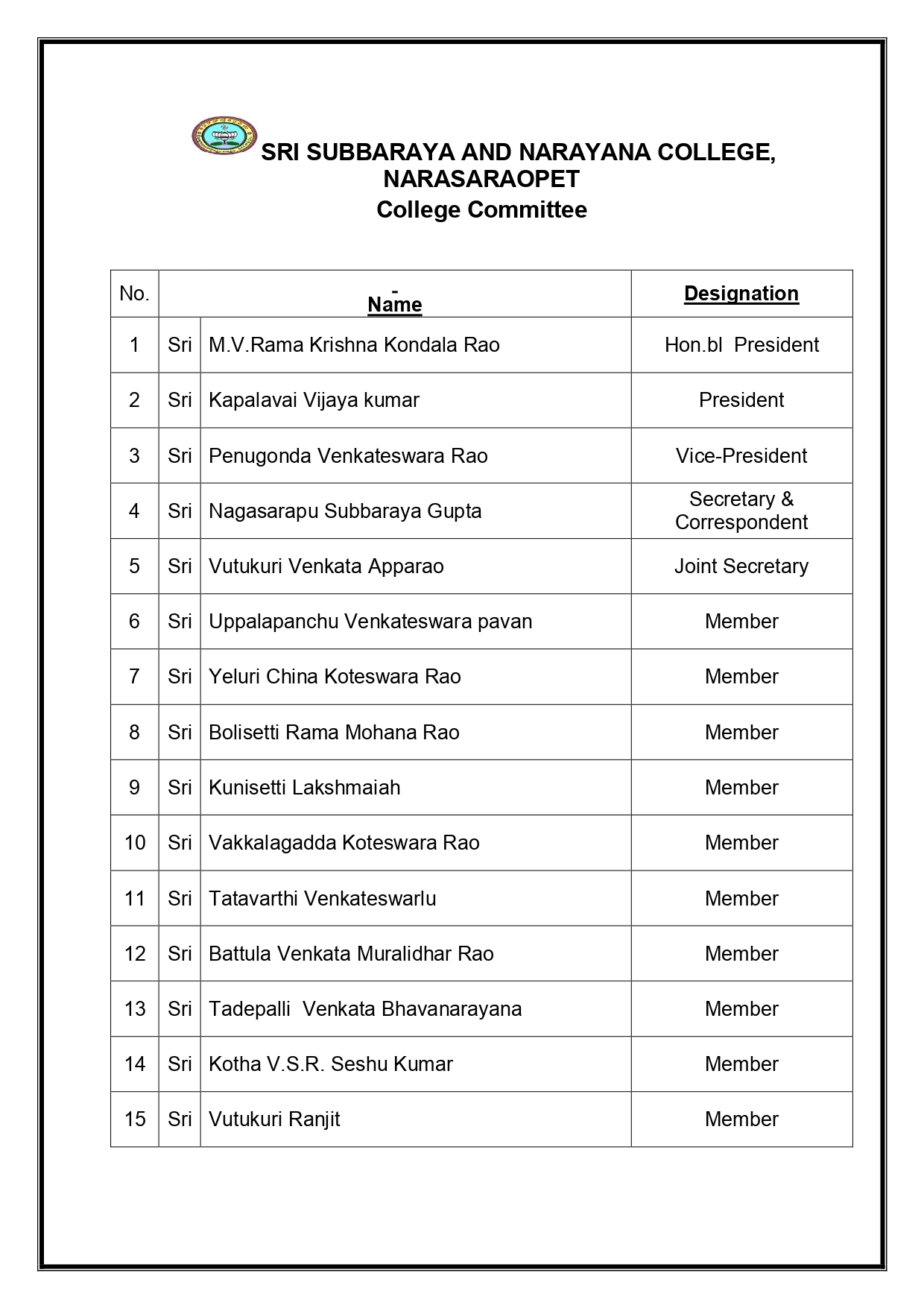 SS and N College, Narasaraopet excels in sports and games
